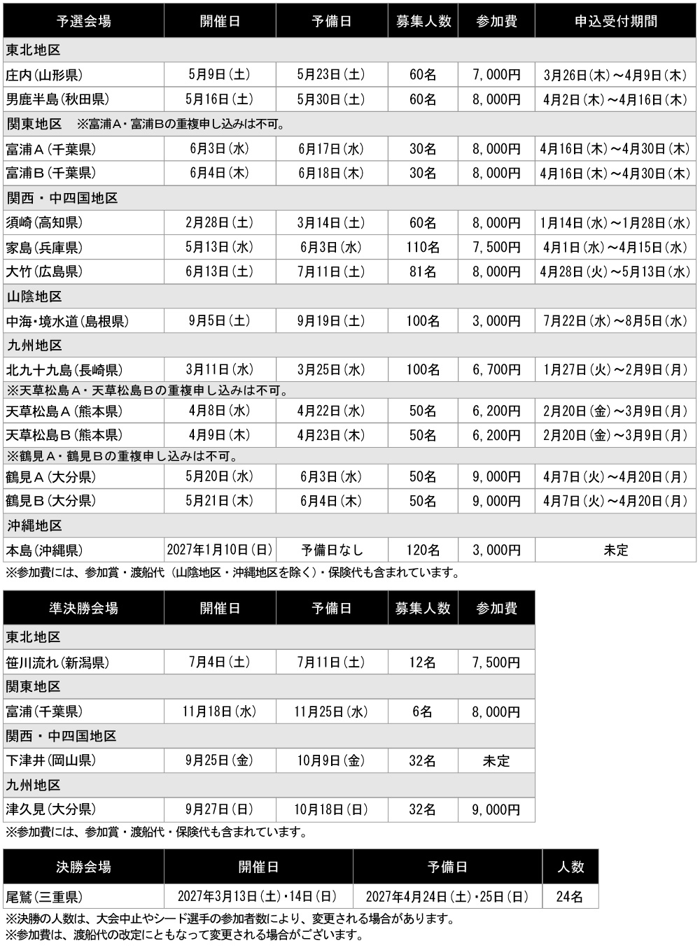 WEB申込みで収集するお客様の個人情報は、本大会の安全な運営や連絡、今後の釣り大会のお知らせ、