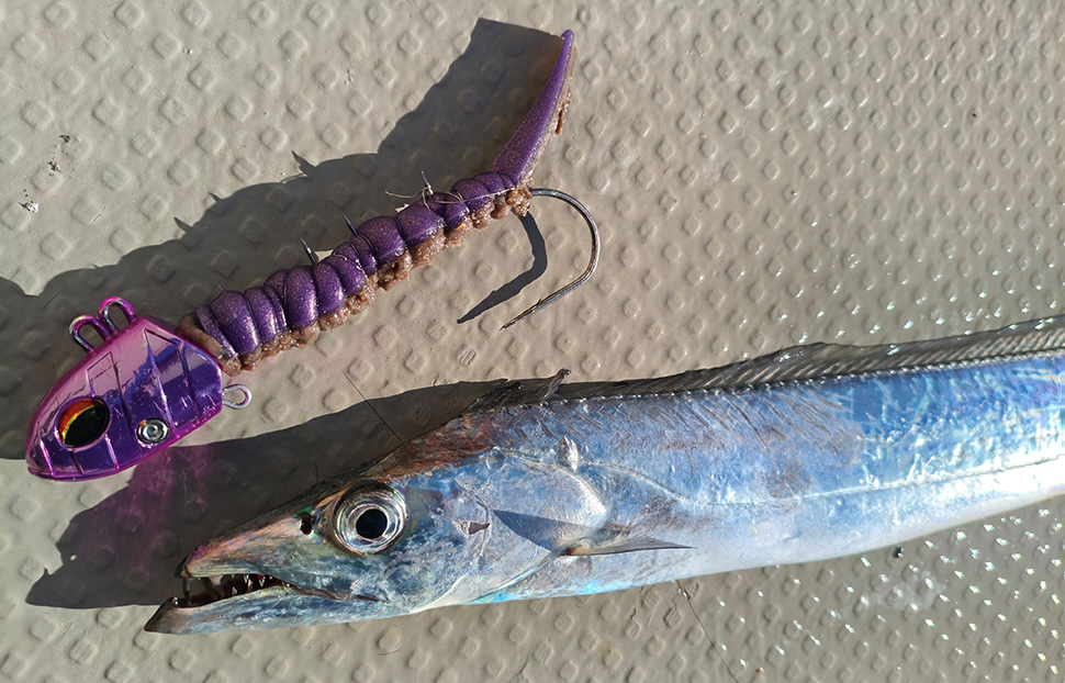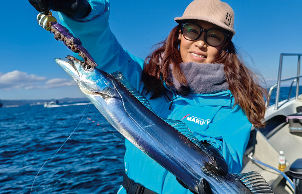 いまのところ、船タチウオテンヤタイプはF5、F7、F10とあるけれど、まずはF7を使って状況をみるのがオススメです。掛かりが浅かったり、追わせ系の釣りのときは、やわらかいF5に、即掛けできるような高活性時にはF10にするのが姉さん流。ルアー感覚で使うなら持ちがいいF10がいいかな。