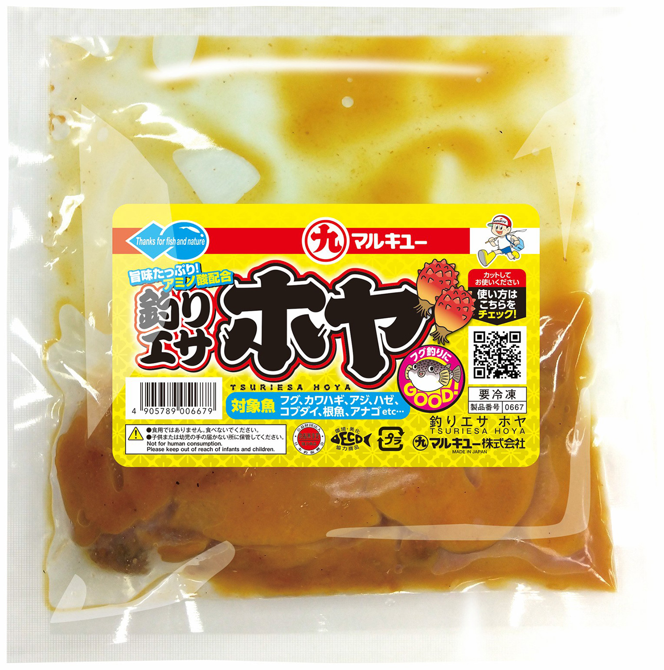 まったく新しい海釣り用のエサとして登場の「ホヤ」。ホヤはさまざまな魚の大好物。さらに旨味の成分であるアミノ酸を添加しているので、魚の食い気を促進します!特に船釣りで大人気のフグのカットウ釣りにもってこいです。使い方はアナタ次第。自由な発想で、ターゲットに合わせてカットしてお使いください。
