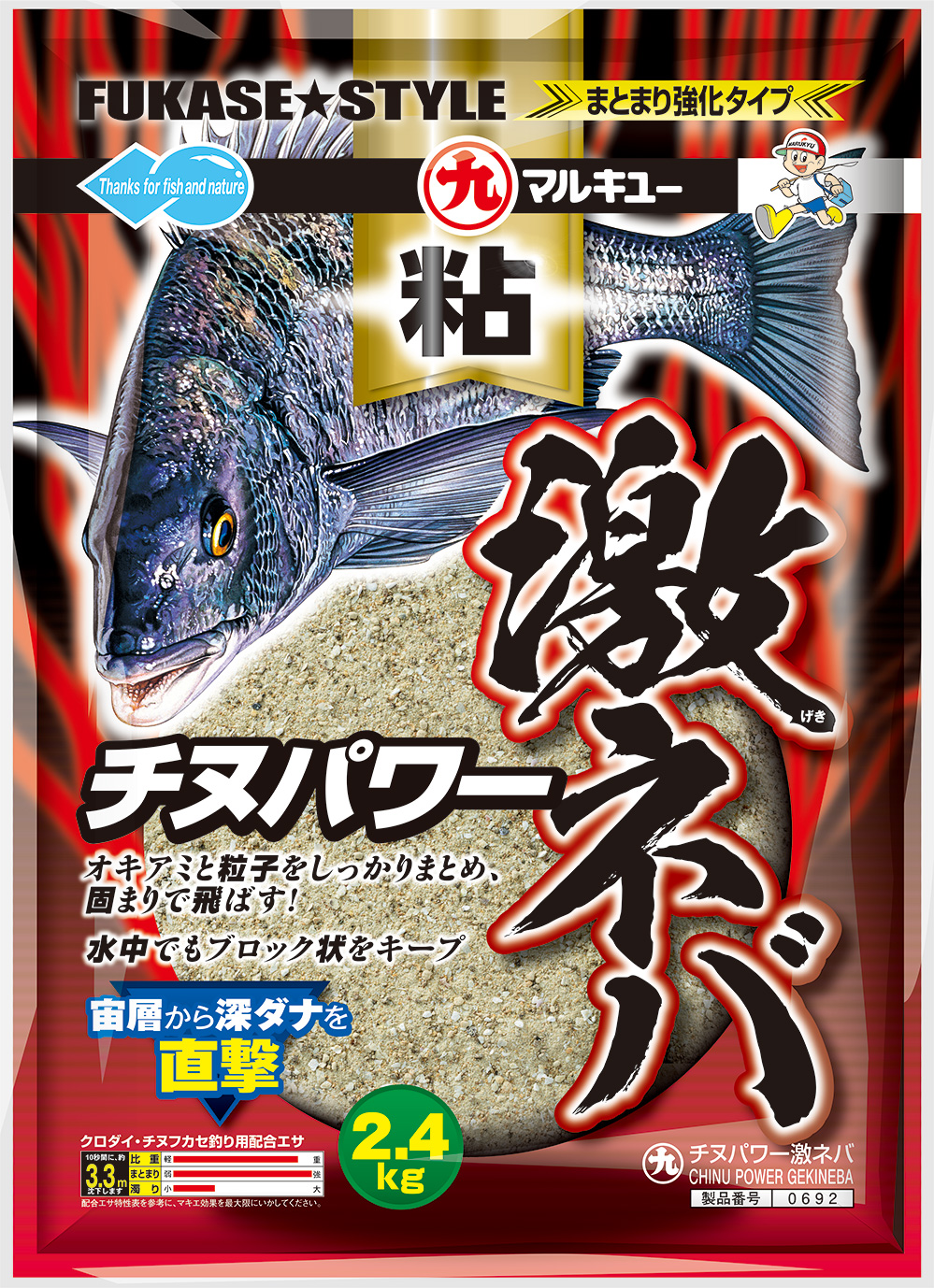 まとまりを高める2種類の素材を採用した、ネバリやまとまりを高める機能に特化したブレンド用配合エサです。オキアミとベースエサの粒子をしっかりまとめるとともに、重さも備えているため遠投性の高いマキエに仕上げることが可能。空中を塊で飛ばせるだけでなく、着水後もまとまった状態で沈下。比較的水深がある釣り場でも宙層から深ダナを直撃できる特性を備えており、ピンポイントにクロダイ・チヌを引き付けられます。